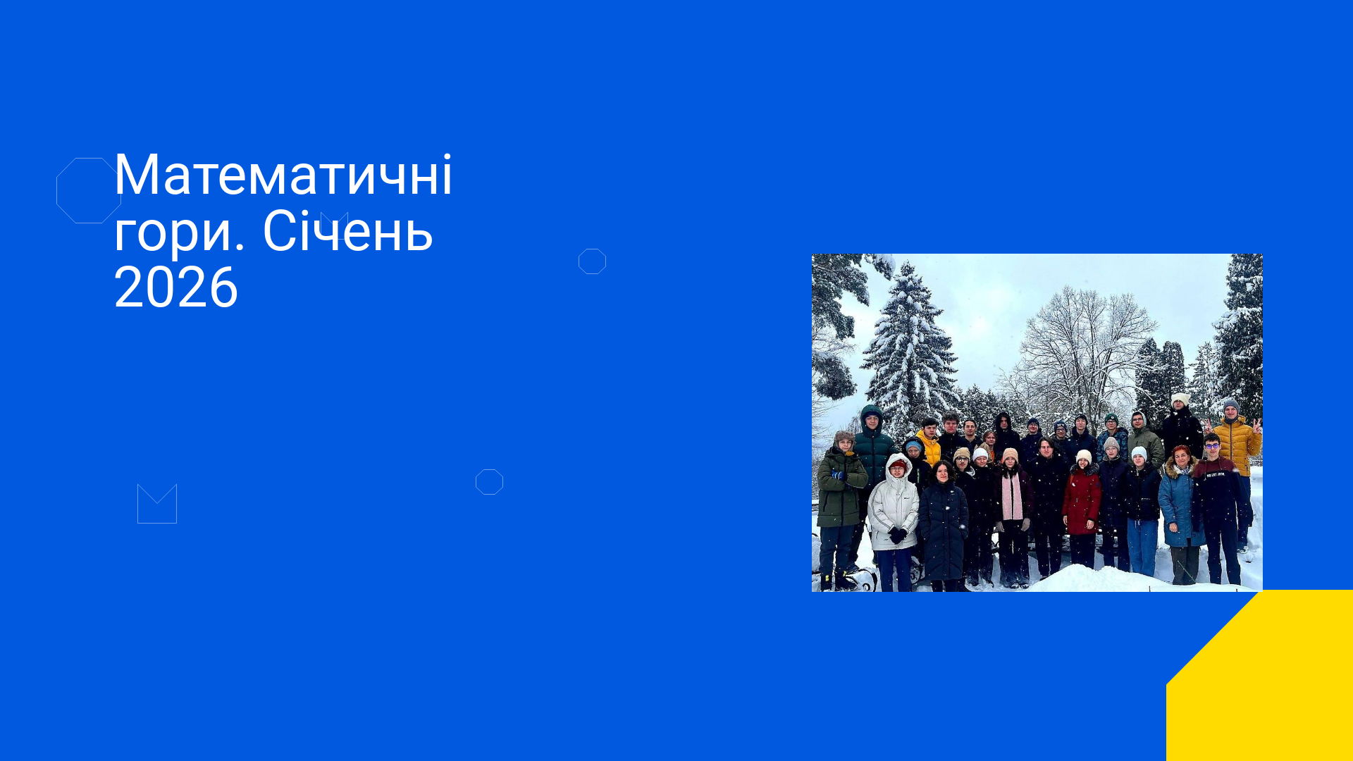 З 3 по 10 січня нас уже вкотре зустрів засніжений та затишний Трускавець, де відбулися наші «Математичні гори». Найталановитіші юні математики України —переможці престижних українських та міжнародних змагань(а саме:), зібралися разом, щоб здобути нові знання та підготуватися до майбутніх олімпіадних викликів.