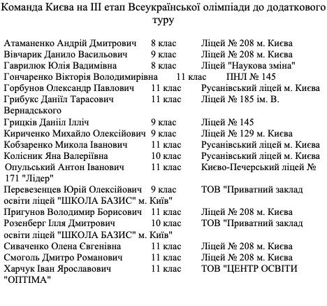 Результати відборів команди Києва після апеляції та учасники додаткового туру відбору