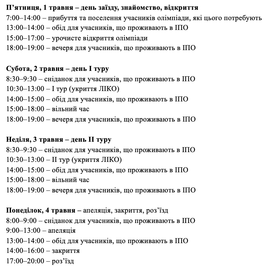 3. Порядок денний олімпіади