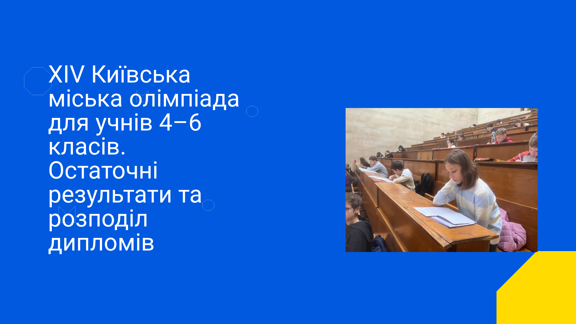 Наводимо остаточні результати XIV Київської міської олімпіади для учнів 4–6 класів та розподіл дипломів.