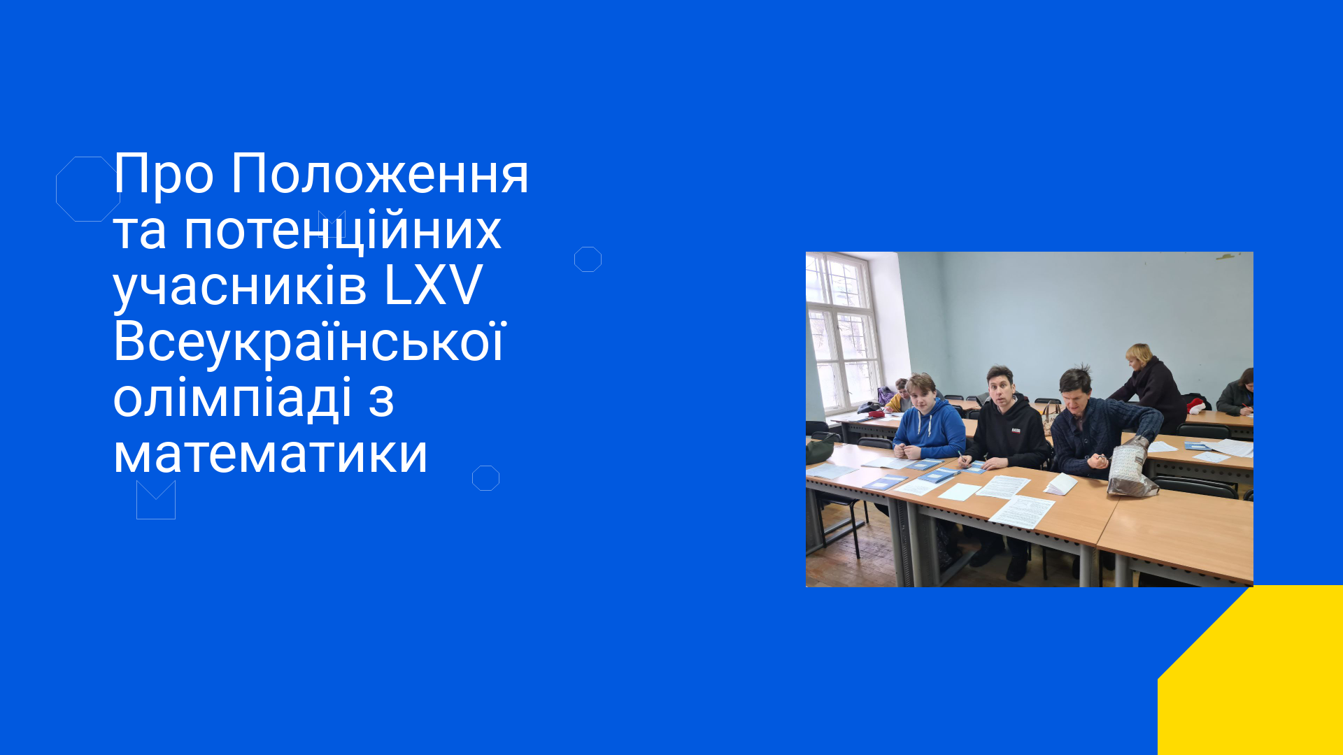Про Положення та потенційних учасників LXV Всеукраїнської олімпіаді з математики