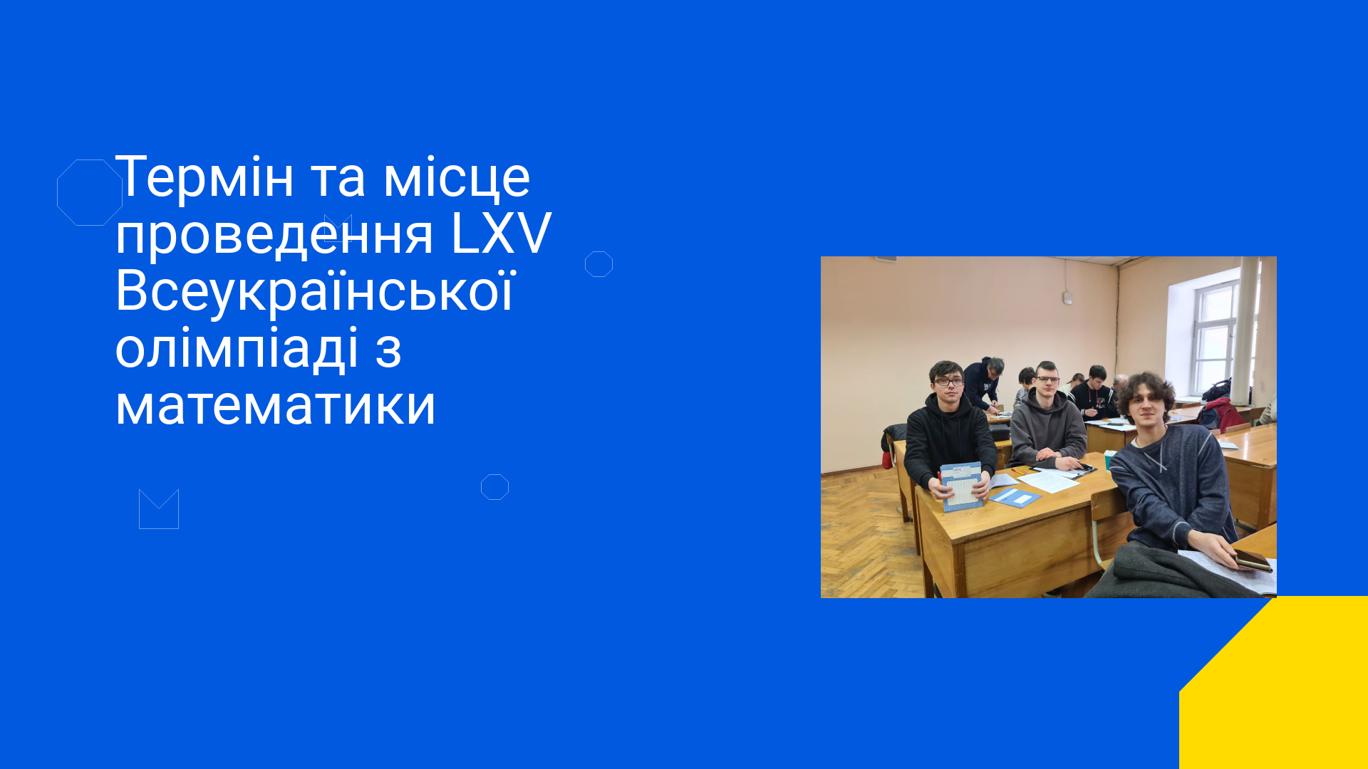 Термін та місце проведення LXV Всеукраїнської олімпіаді з математики