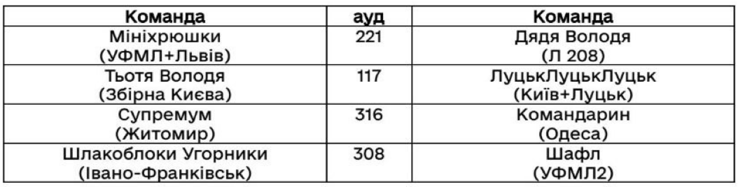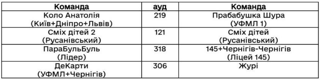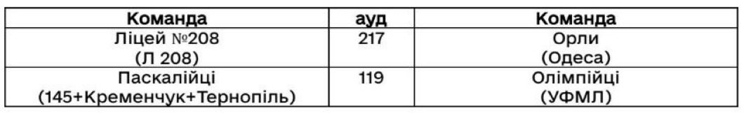 ХVІІI Всеукраїнський турнір математичних боїв Розклад третього бою. Результати другого бою