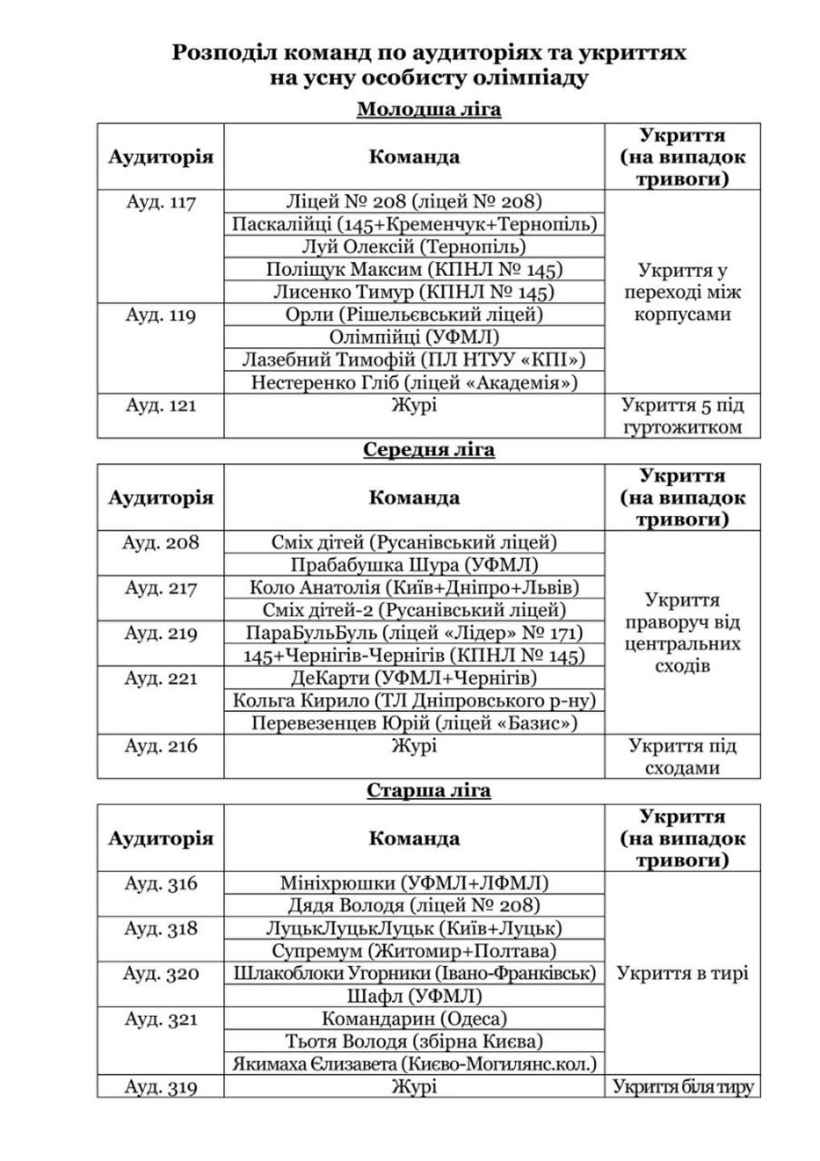 ХVІІI Всеукраїнський турнір математичних боїв Розклад усної особистої олімпіади. Результати третього бою